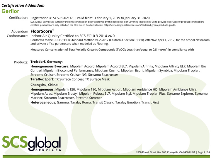 MIPOLAM®180具有抗菌和防霉的特点。该地板符合EN649(34-43)项规定,其耐磨性达到 Group P的标准,适合于人流量大的地方使用。